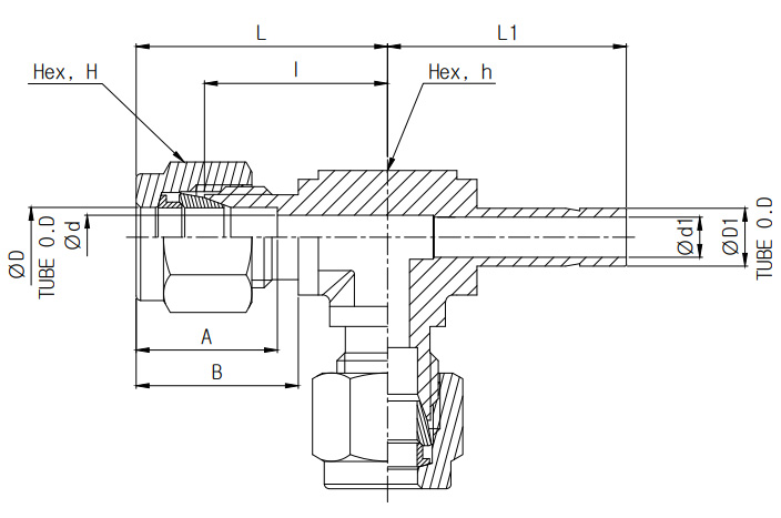 1/4 in O.D. X 1/4 in Tube Stub, Adjustable Run Tee